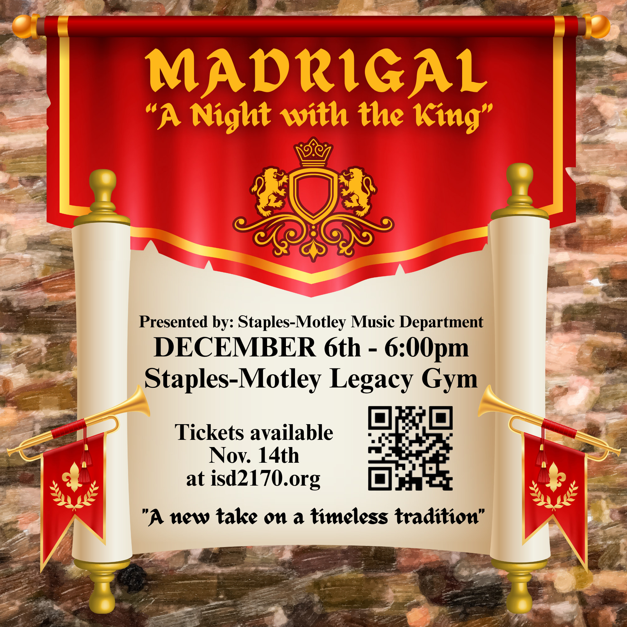 Join us for MADRIGAL “A Night with the King”! Purchase your tickets for this dinner musical event presented by our Staples-Motley musicians! Hurry, there are a limited amount! https://staplesmotley.cr3.rschooltoday.com/…/subcate…/12